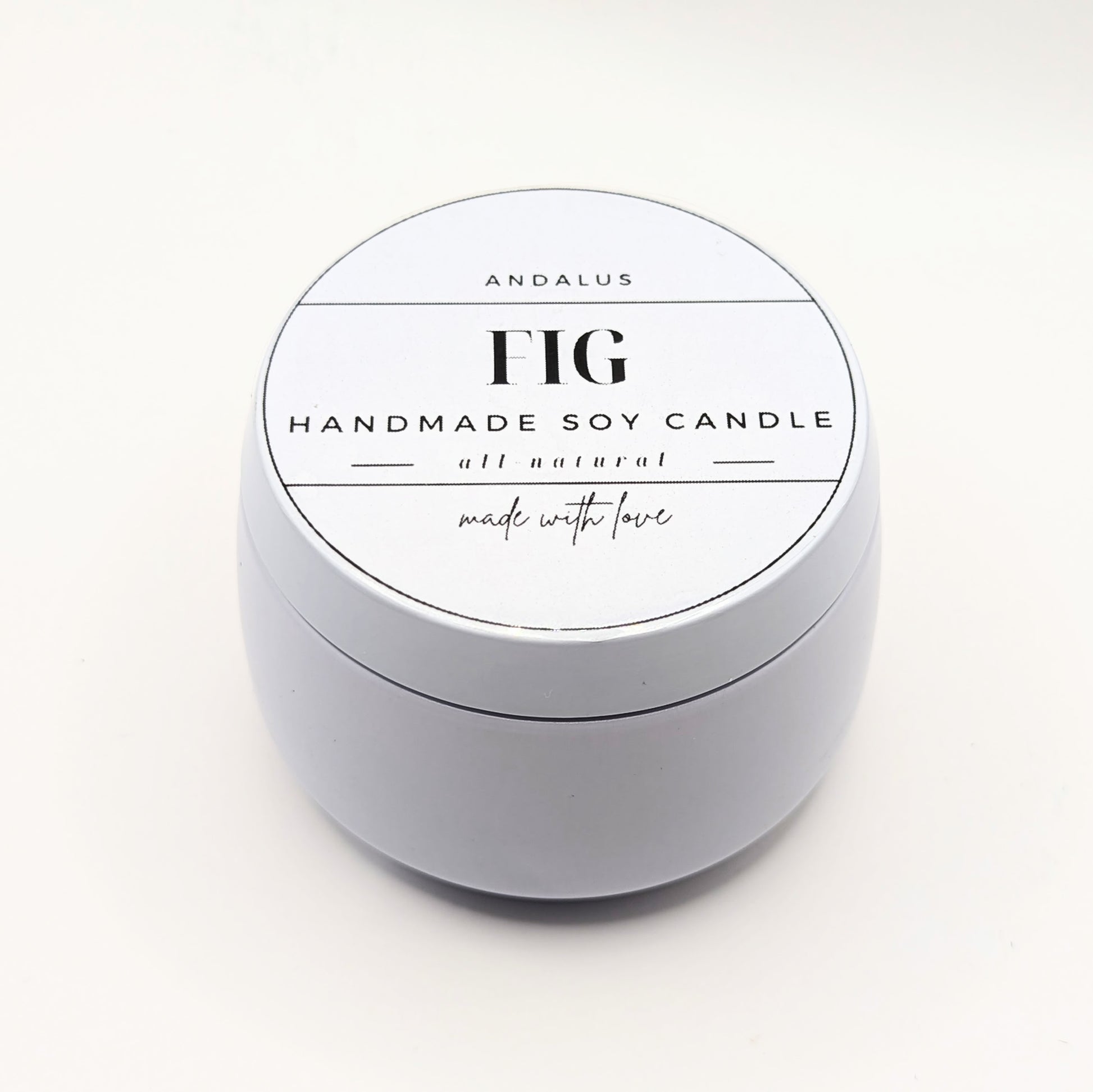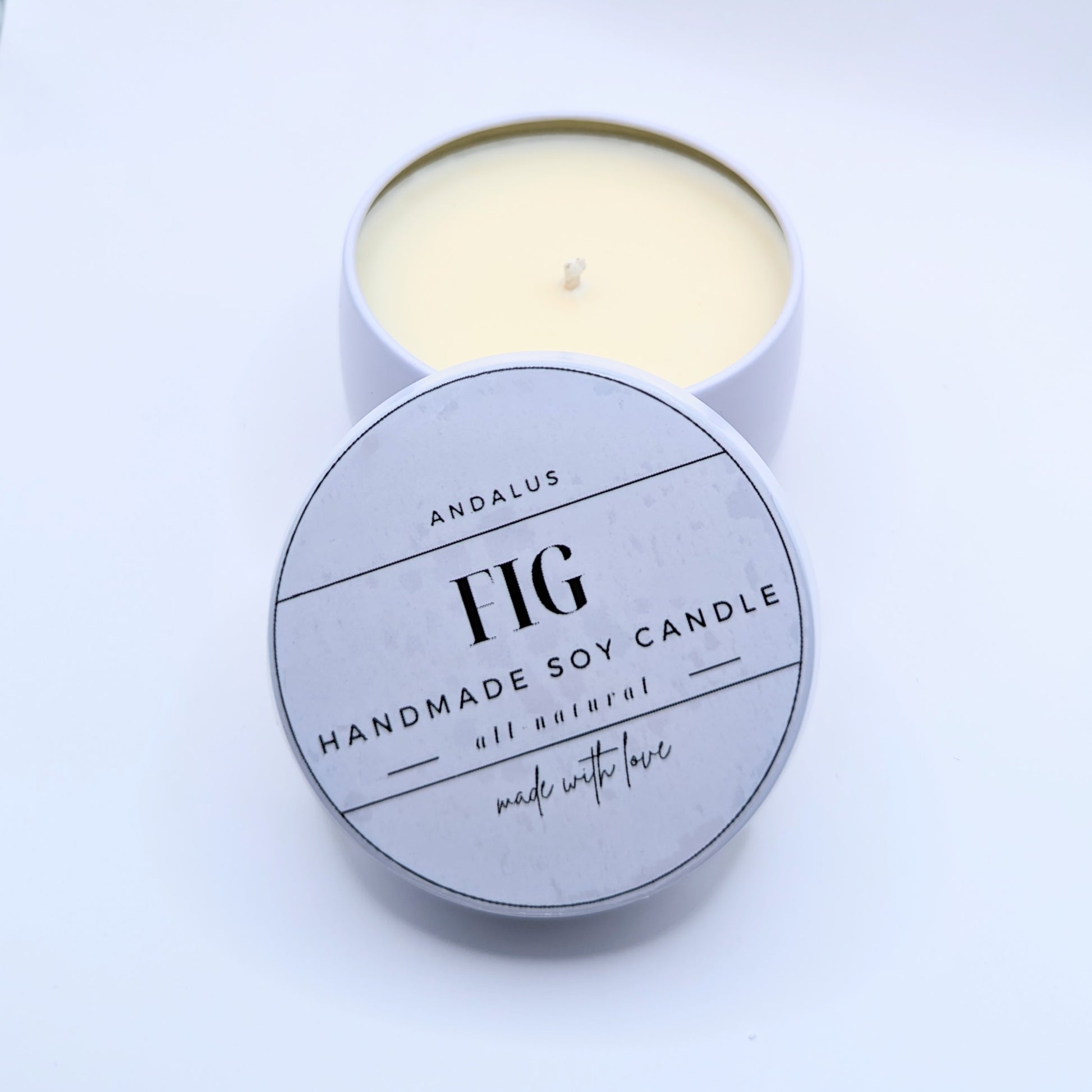 Sleek & Compact: Housed in a white aluminum tin, our Fig Essential Oil Candle is not only chic but also perfectly portable. Ideal for any space or as a travel companion, it's a versatile source of relaxation.