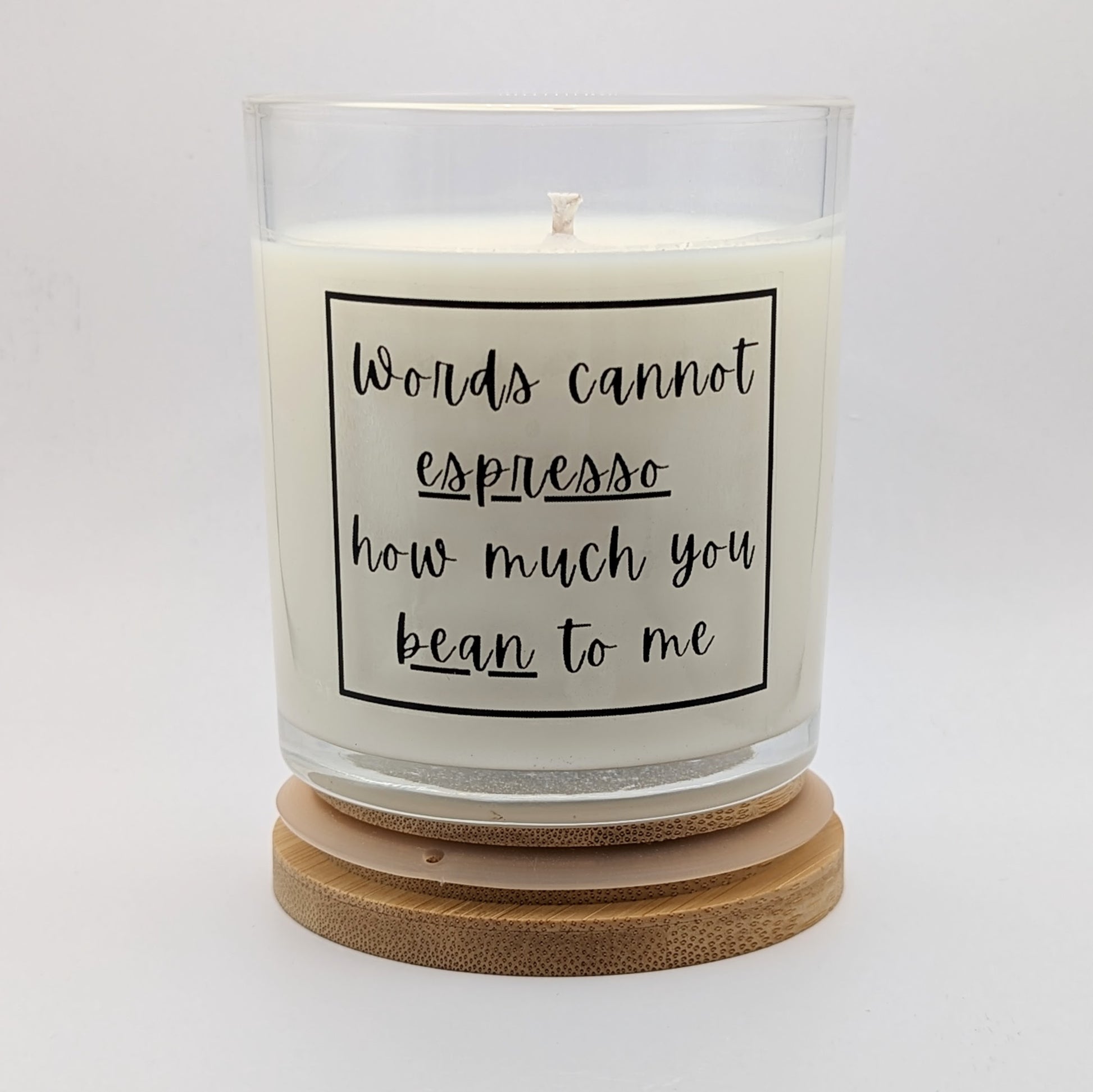 Elevate your senses with our Punny Espresso Candle, a masterful creation meticulously crafted with the finest soy wax. This exquisite 10 oz candle is not only a testament to quality but also a commitment to your well-being, being free from harmful parabens and phthalates.